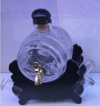 Стъклено буре на дървена поставка с 4 чаши и тапа - 1 литър. 24/24 см в сглобен вид.